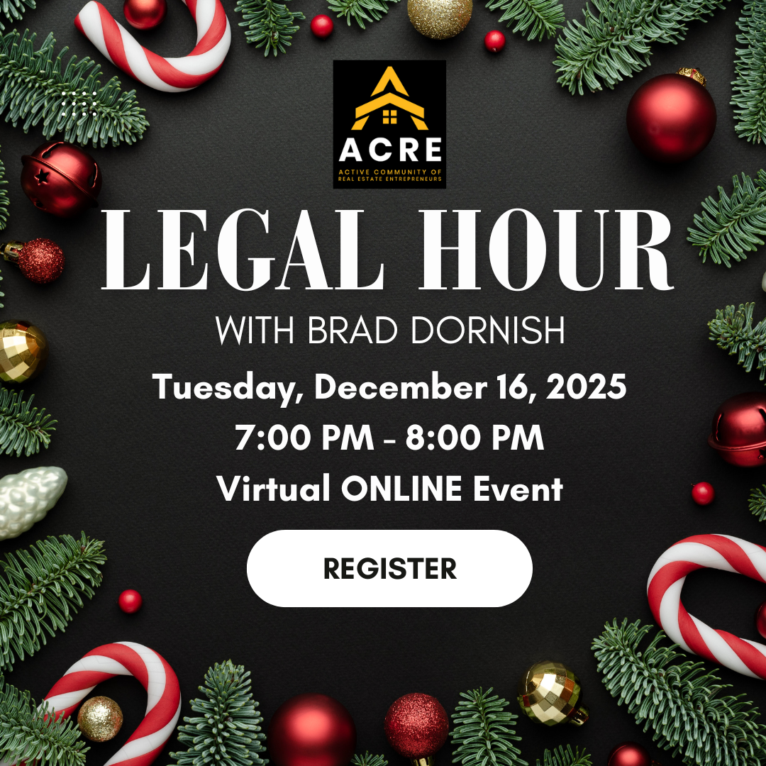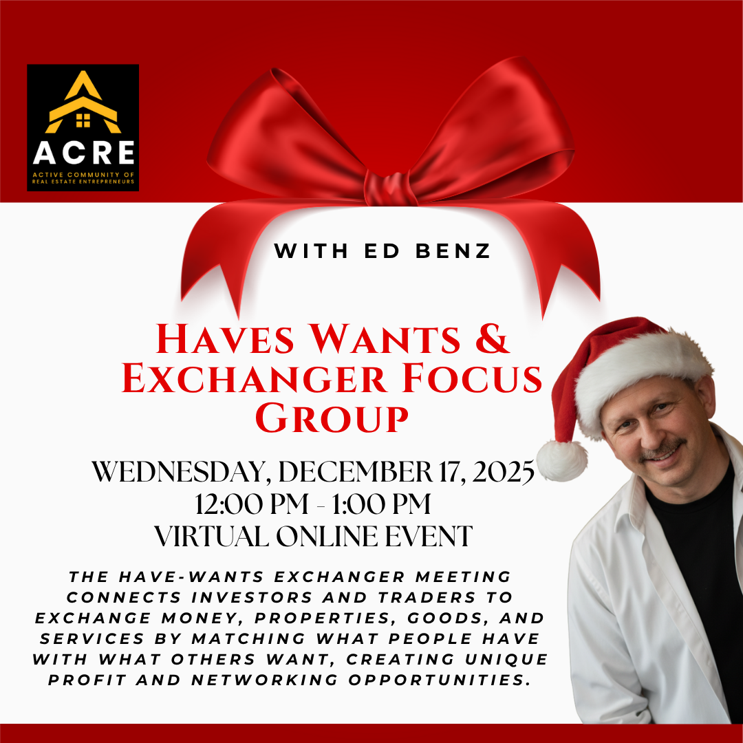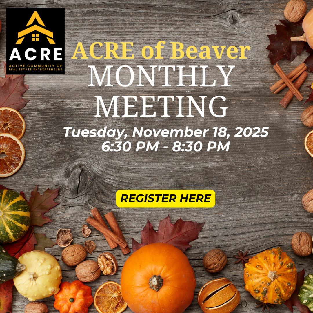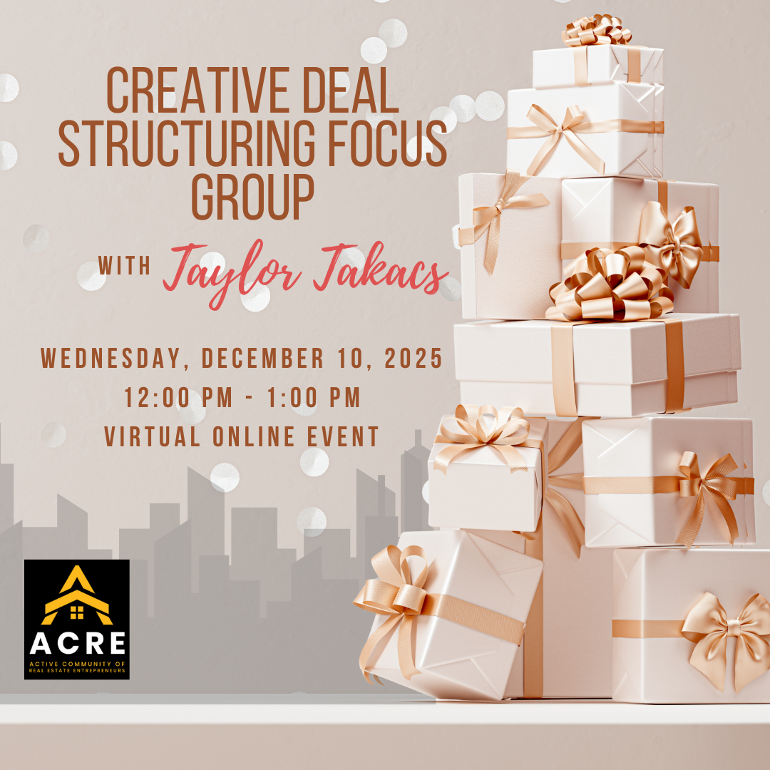 Continuing on the first Tuesday of every month, ACRE (Active Community of Real Estate Entrepreneurs) Monthly Meeting is being held at the