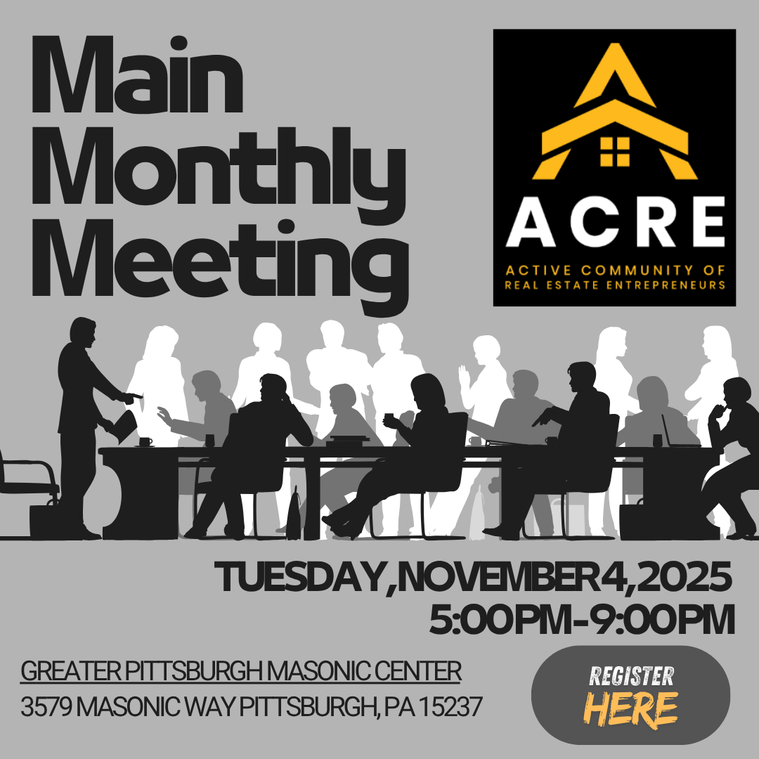 Continuing on the first Tuesday of every month, ACRE (Active Community of Real Estate Entrepreneurs) Monthly Meeting is being held at the